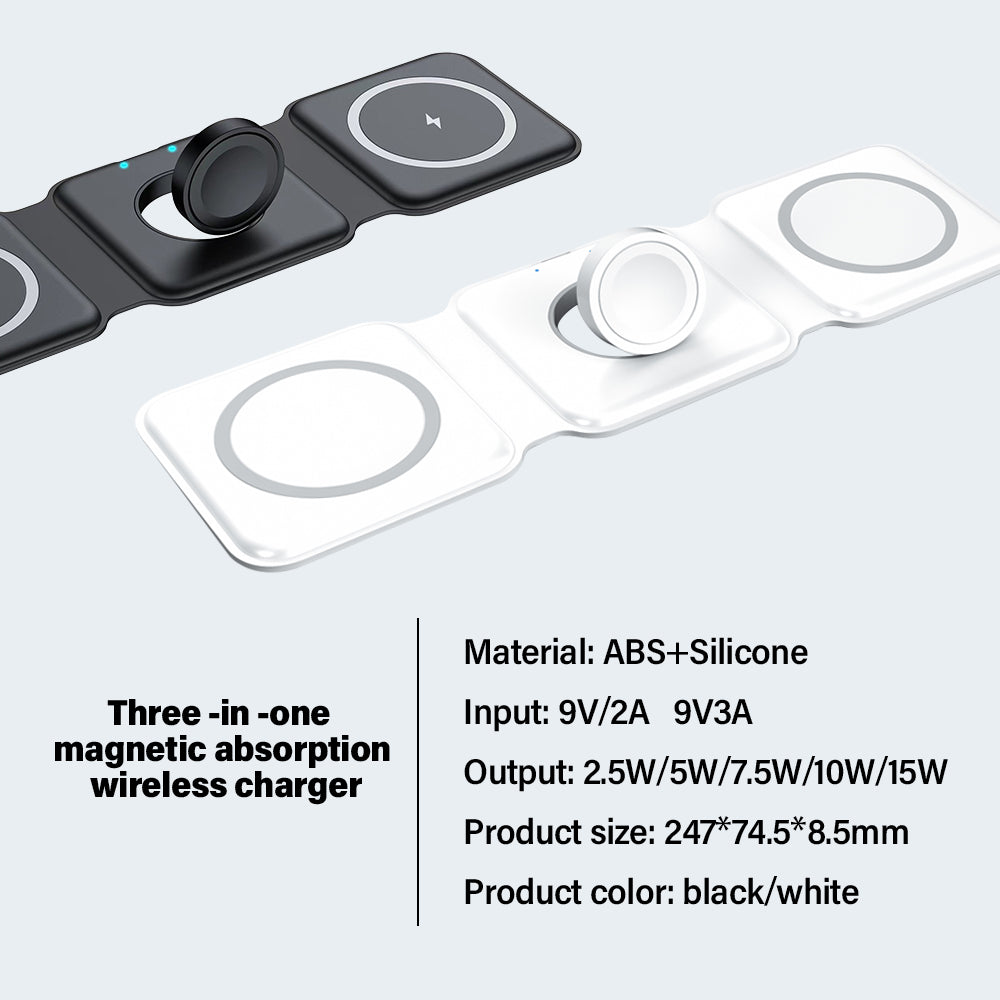 3 in 1 Magnetic fold 15W Wireless Charger Stand Fast Wireless Charging Station