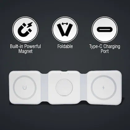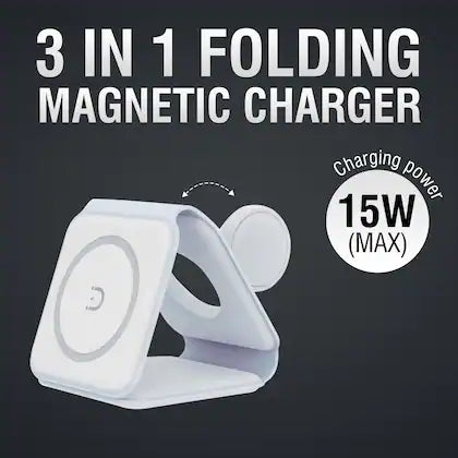 Stay connected and powered up with the 3-in-1 Magnetic Fold Wireless Charger Stand—your ultimate charging companion!