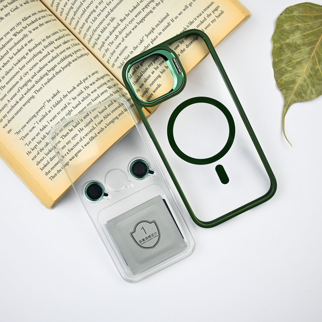 Precision Fit: Designed with precision, the case allows for easy access to all ports, buttons, and features, providing a seamless user experience while showcasing the stylish and functional aspects of the Metal Camera Stand MagSafe Case.