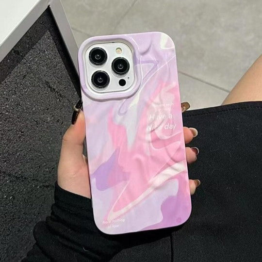Rainbow Aesthetic Textured Positive iPhone Soft Silicone Case - Good Luck & Have a Nice Day